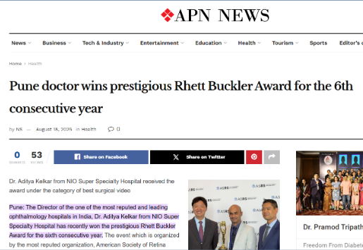 Doctors from NIO Super Specialty Hospital win two top awards at this year's APVRS 2025 World Conference