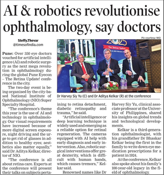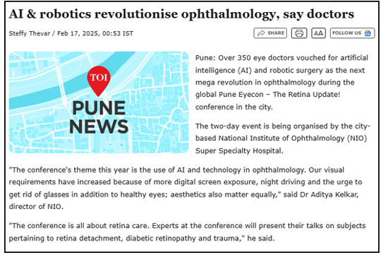 The Times of India Headline AI & Robotics Revolutionise Ophthalmology, Say Doctors