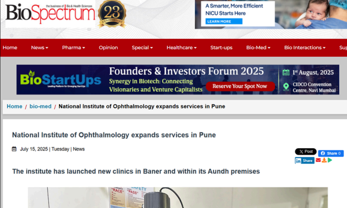 National Institute of Ophthalmology Expands Services in Pune