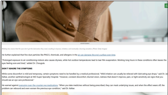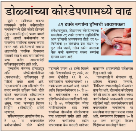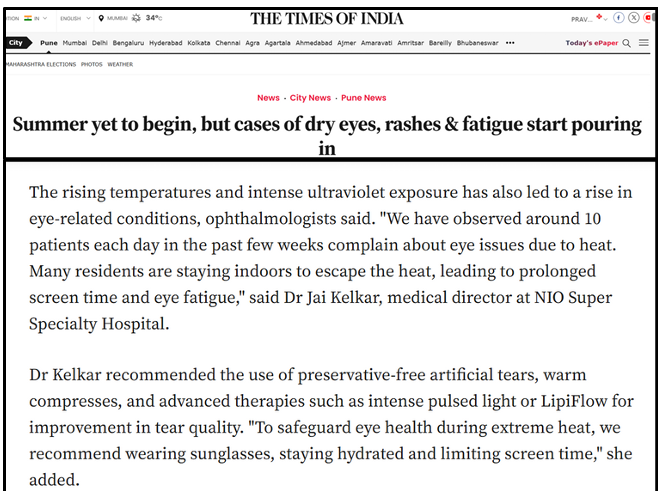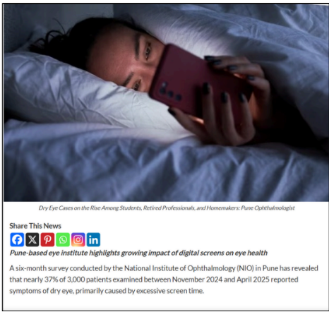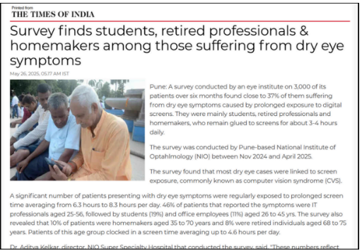 Dry Eye Cases on the Rise Among Students, Retired Professionals, and Homemakers: Pune Ophthalmologist
