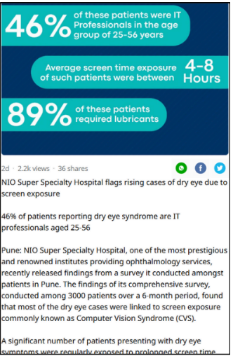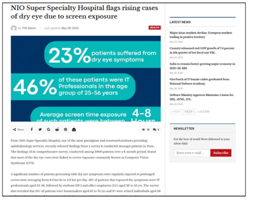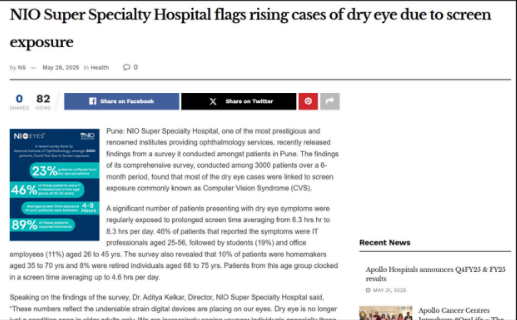 NIO Super Specialty Hospital Flags Rising Cases of Dry Eyes Due to Screen Exposure