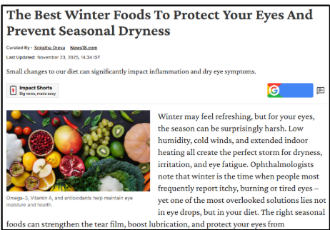 Winter Eye Discomfort: Why Cold Weather Triggers Dry, Irritated Eyes And How to Protect Them