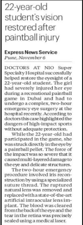 22-Year-Old Student's Vision Restored After Paintball Injury